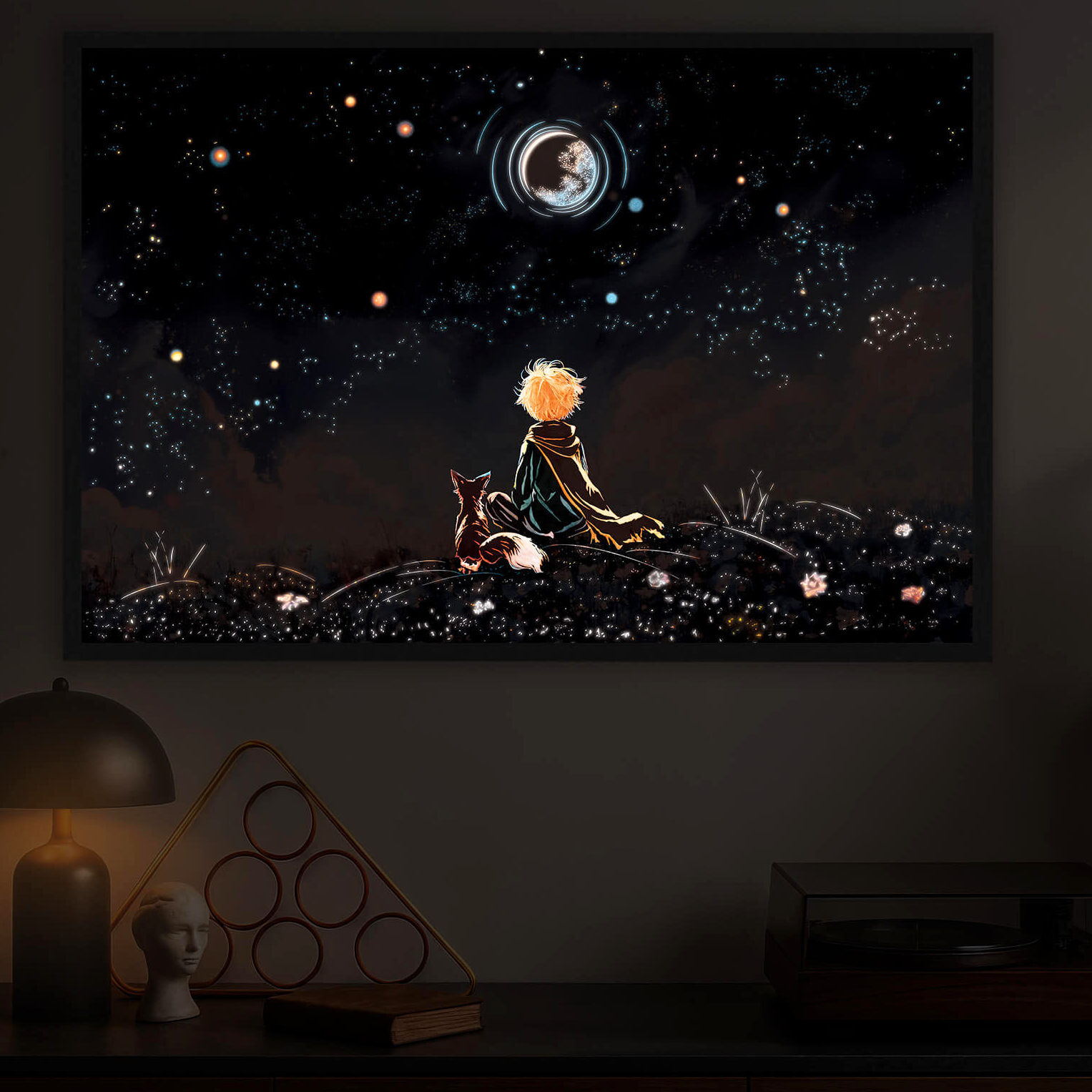 Step into the fairytale inspired by The Little Prince with this illuminated painting. Glowing softly in the dark, it turns your walls into a dreamy universe where imagination lives forever.