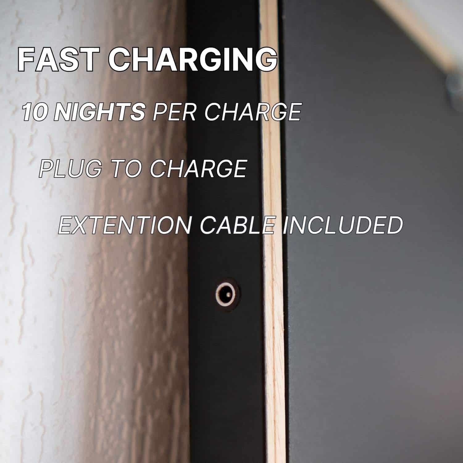 • Built-in charging port; battery lasts up to 10 nights per charge