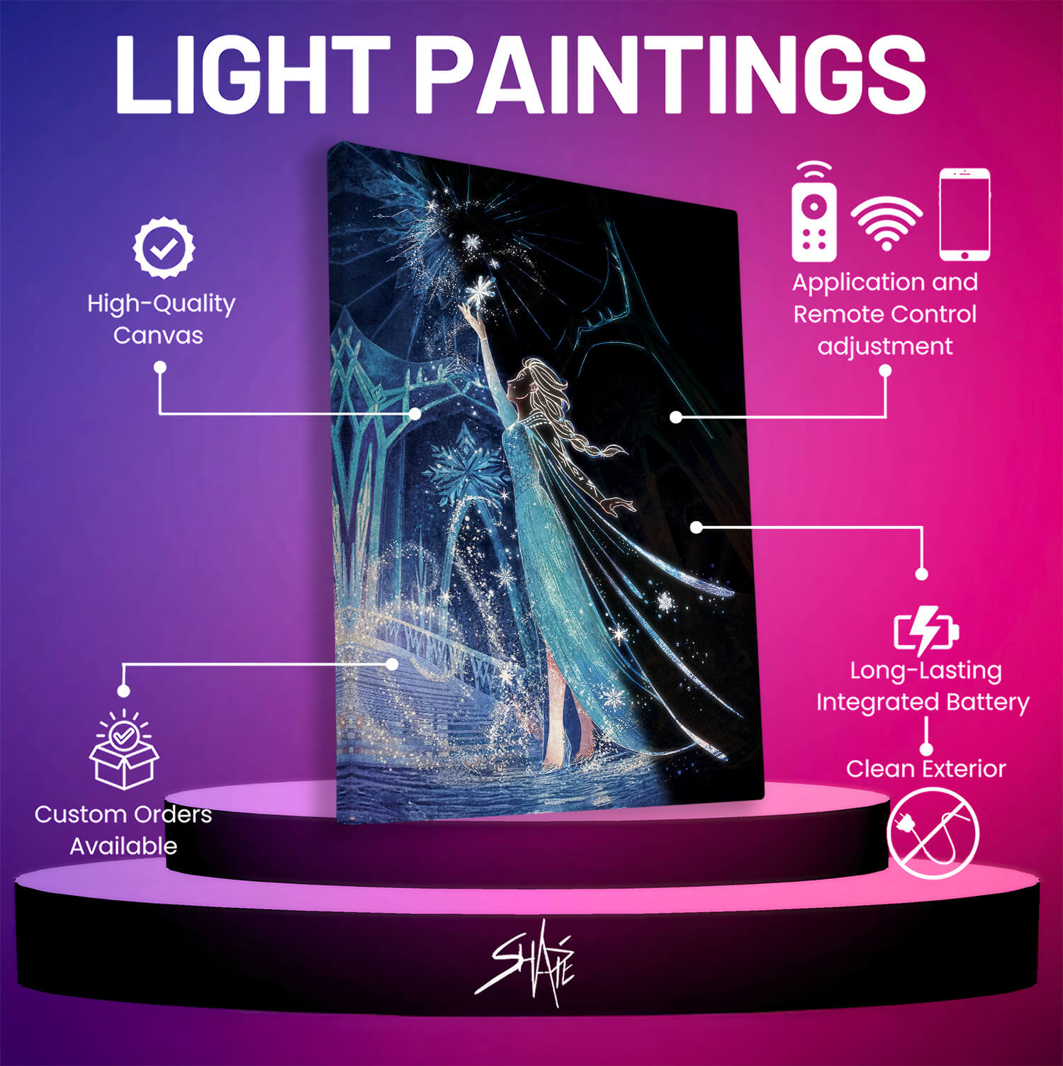 • A high-quality illuminated painting with integrated LED and power system